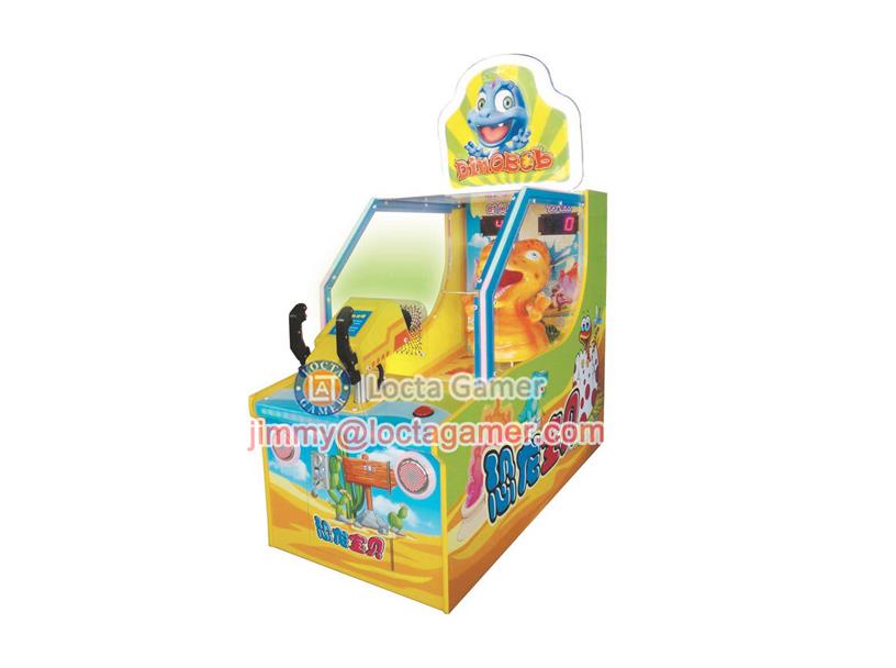 1.投币后开始游戏,一直按枪头按键,小球会一直喷出,恐龙的嘴会一张一闭。