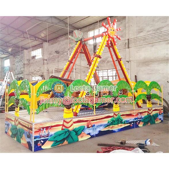 This Pirateship is a small size 12 seats park rides. The pirate ship after starting from the slow to the fast. The speed of the ship is 72m/min, the number of round trip is 18 times per minute.